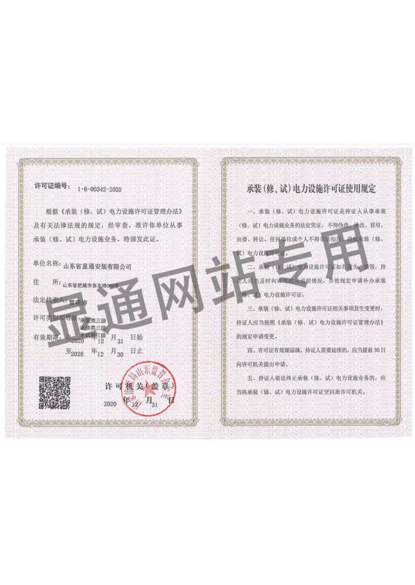 承裝(修、試)電力設(shè)施許可證